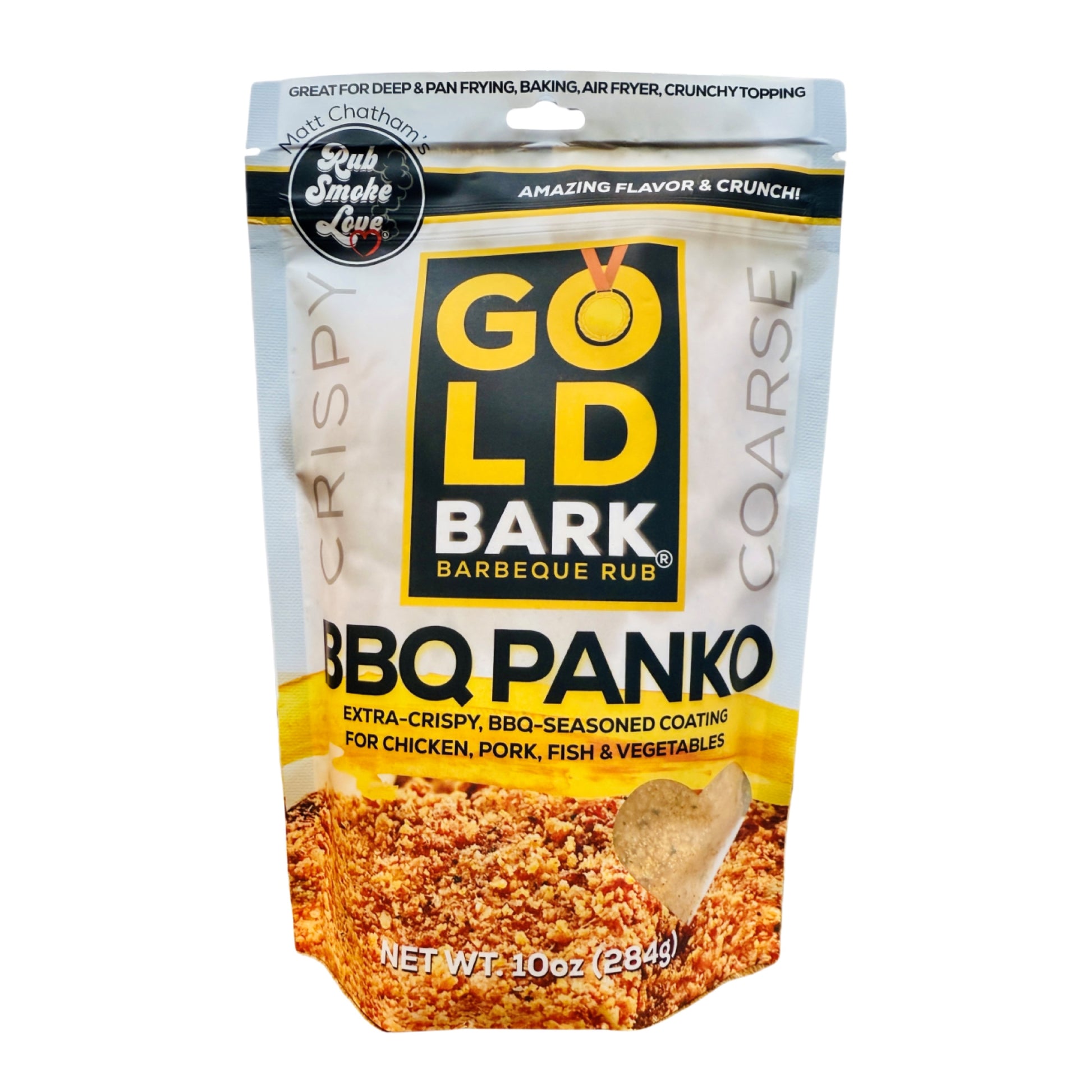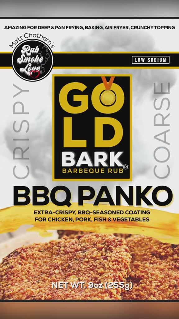 Introducing a groundbreaking marriage between our beloved Gold Bark bbq rub and Japanese-style panko breadcrumbs. Crafted to add a perfectly balanced, unique flavorful crunch to any manner of breaded chicken, pork or fish that you can dream up in your kitchen. Enjoy!